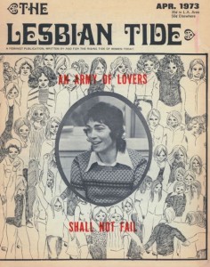 Feminism, and particularly lesbian-feminism, was the next wave that she caught. Transitioning from the softball fields of Pico Rivera to the presidency of the LA chapter of the Daughters of Bilitis, she saw the need for a publication to give voice to the new generation of lesbian feminists, and she began The Lesbian Tide, which became a national newsmagazine and the voice of a generation of lesbians.