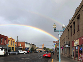 me to pull over for the night. Right after I found the memorial bench and said a silent prayer for peace, I was blessed to see a double rainbow over the town.